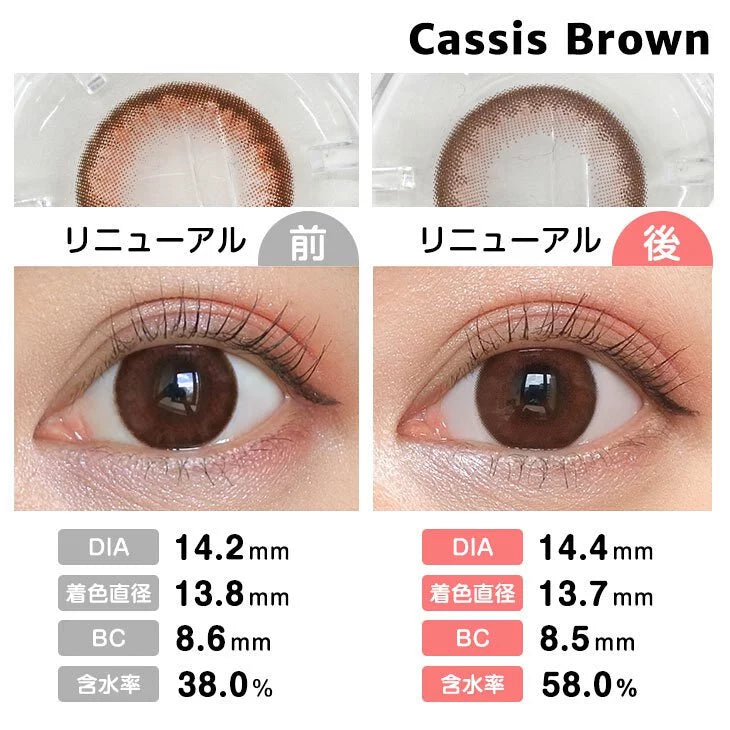 AngelColor Bambi Series 1 Day Cassis Brown 黑加侖棕 ♡♡ 赤茶小鹿眼!/預訂時間7-14工作日 AngelColor Bambi Series由日本時尚教主益若翼親自監製,#Cassis Brown帶有一種熟透果實般的紅潤色調♥︎ 產品介紹♡ 🫐#Cassic Brown:能提升女人味的秘密武器? 它是一款極具色彩美學的款式,最迷人之處在於基調中揉合了微醺的黑加侖紫紅與暖朱古力棕,呈現出層次豐富的赤茶色調,外圈採用了Bambi系列標誌性的黑環設計,製造出小鹿般圓潤無辜的視覺效果✦ 最內層隱約透出極細碎的高光點,在這層果實色上呈現出通透的糖漿感,然後眼神會散發出一種嫵媚而溫柔的氣息✧ 顯色度:★★★★☆ (紅棕色調在深瞳上顯色度極佳,極具辨識度) 風格:微醺風、無辜小鹿眼、甜美系 建議妝容:楓葉紅棕色系眼妝 |
